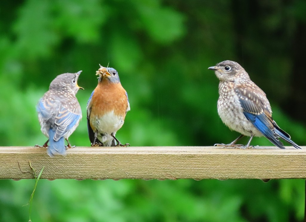 The new fledglings stay close to the parents as they grow and learn, and I always hope they will return as next spring’s bluebirds.